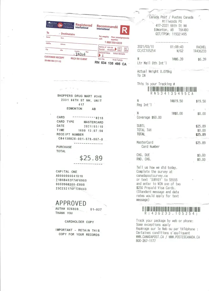 Received by Canada Post /Feb .10 Shipment at4:50 in Saskatoon