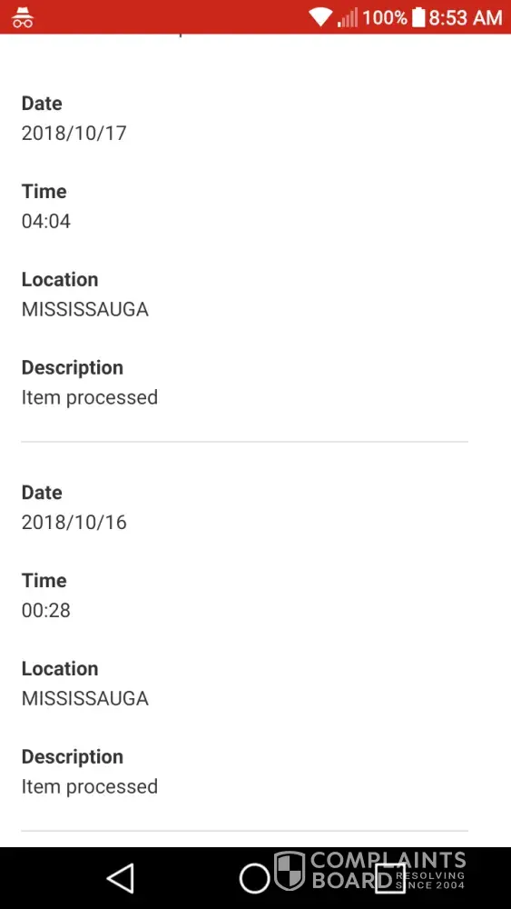2018/11/09 15:42 MISSISSAUGA, ON Item processed