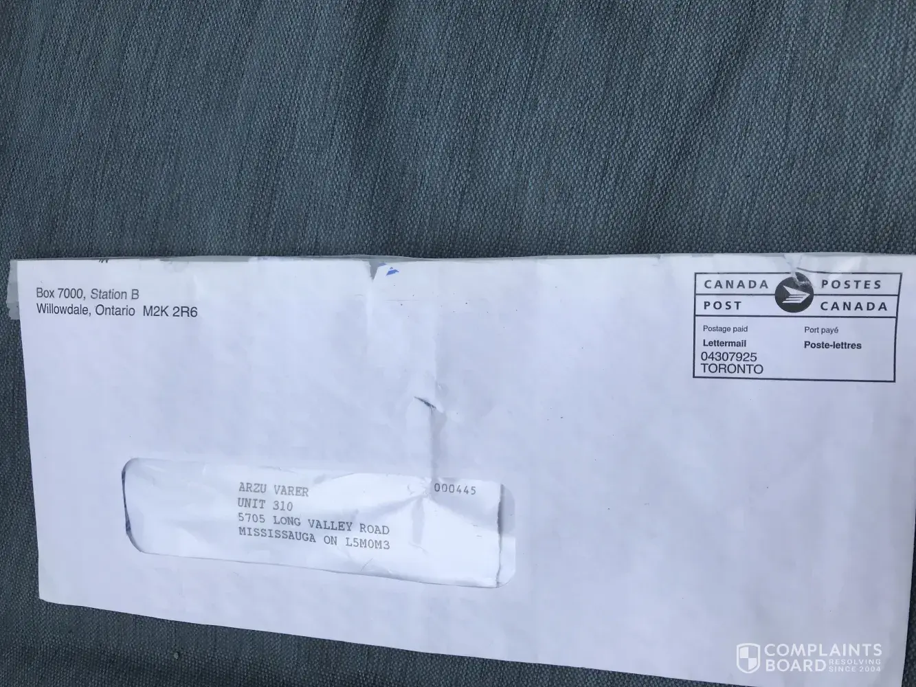 At first I thought maybe it was sent to wrong mailbox instead of mine and that person opened without noticing and taped it and put it back mine but that is not possible because our mailboxes can only be accesed by Mailman. Please also be advised a month ago I received a letter with my credit card password but I never received the actual card for that password so looks like something is happening. Please investigate before something worse happens. My address: 5705 -310 long valley road, mississauga ontario