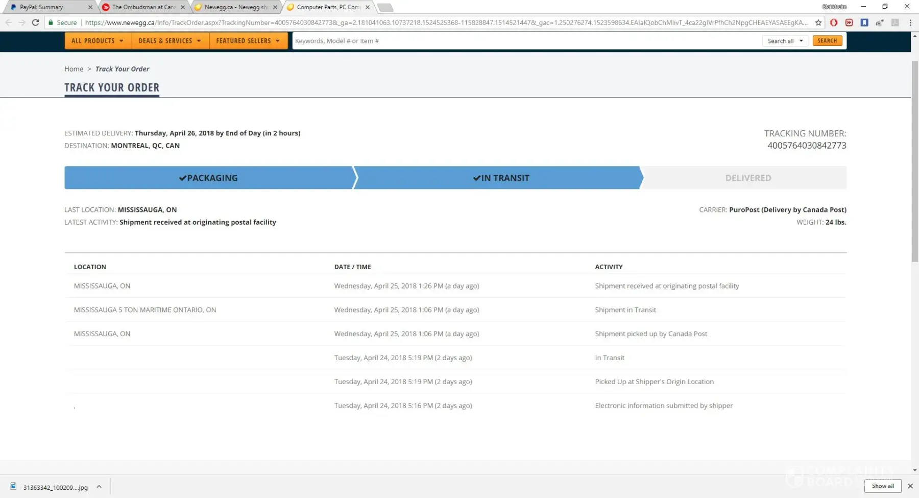 Canada Post failed to deliver on the expected delivery date. On the newegg website I clicked on my tracking number and it showed me the expected delivery date in great detail including expected delivery time. I waited till 9pm at which time I decided to call them. I was informed by the person on the phone that my package was still in Toronto. So not only did I waste my time waiting, they failed to provide the correct information on their website with expected delivery date and time. This is the second time in a row that I have had to deal with Canada Post. This is unnacceptable and an apology phone call simply won't due this time around. My time was wasted with their misinformation and feel that I should be owed something in return for my time. This is unnacceptable. Here's a photo of their lies for proof and evidence.
