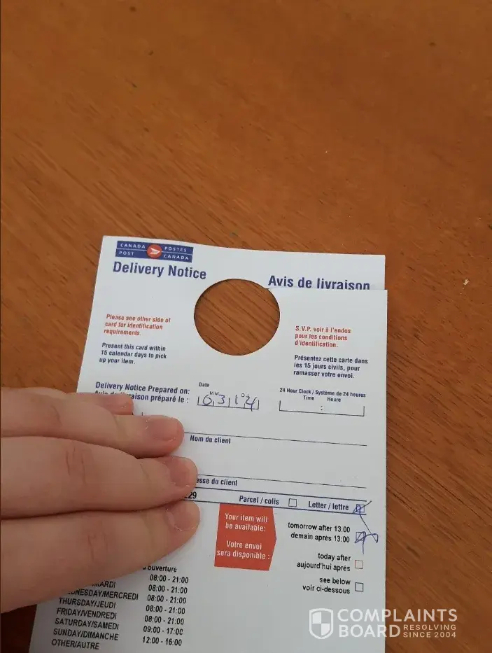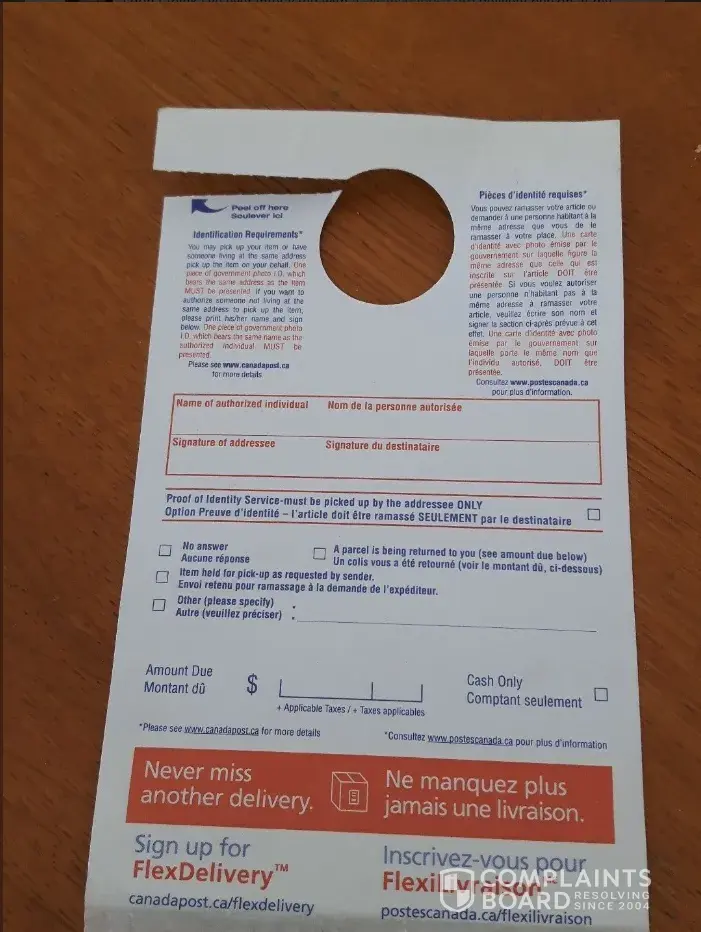 Canada Post not delivered, showed as such!
