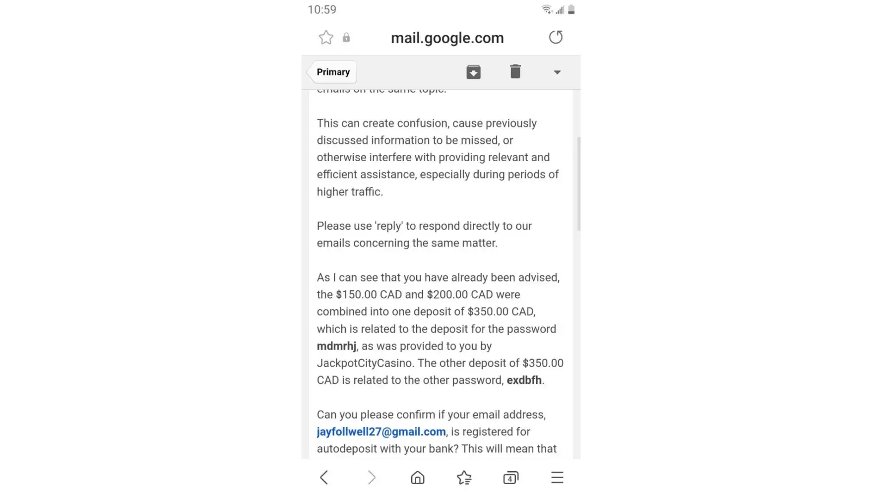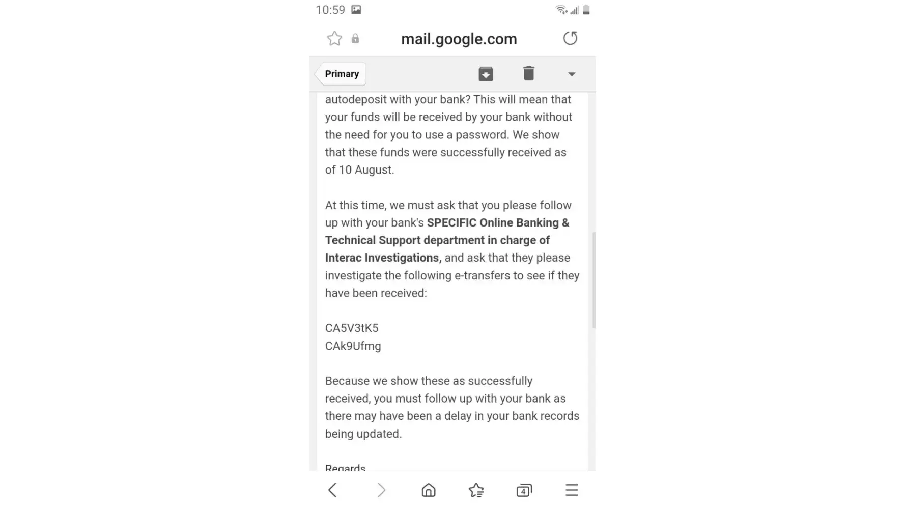 4. I have no visibility into the CIBC warning of Oct242022. There was no written communication from CIBC with the exception of October 18th when I was informed on the bounced checks. As of October 26th, I will