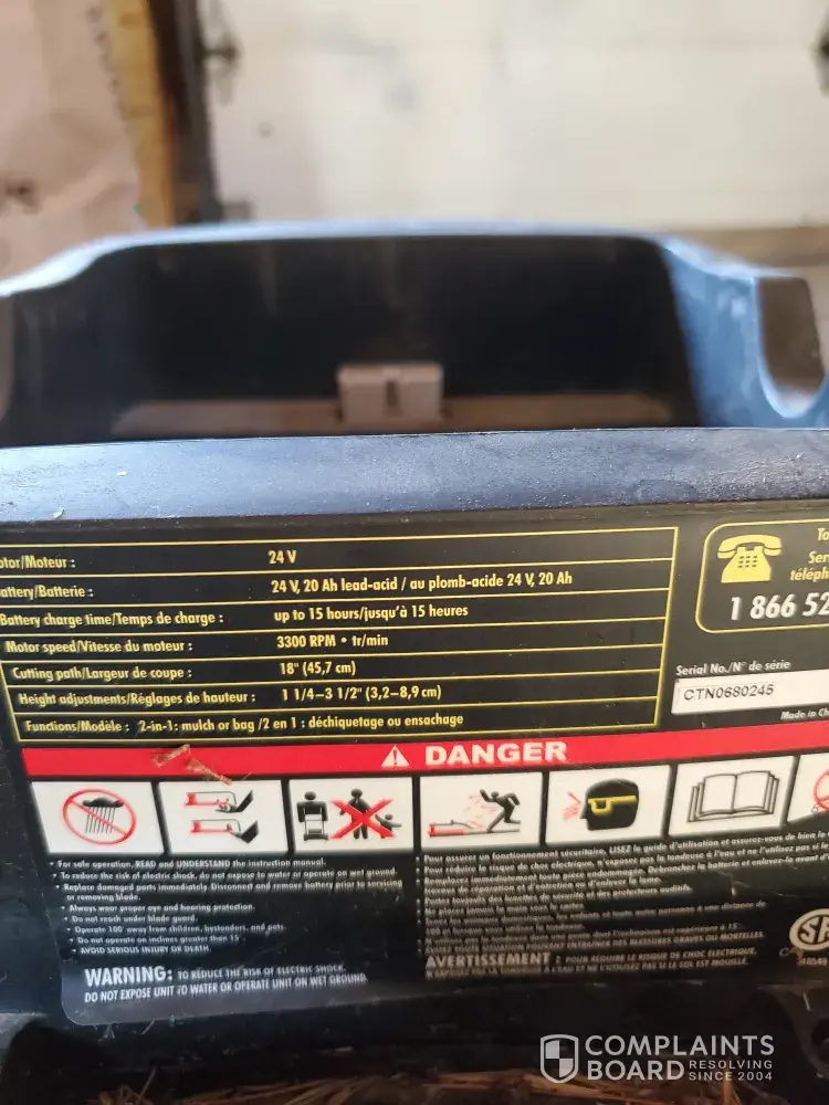 Read full complaintYardwork cordless lawnmower