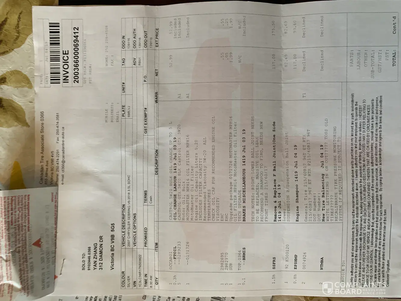 Last Thursday July 4, 2017 I was in to get my winter tires changed over to my summer tires. They gave me a list of things that needed to be fixed on my car: fuel/steering lines were corroded, 2 clamps on exhaust pipe needed to be replaced and a wheel alignment was recommended. Phoned to make an appointment for today last Friday and was quoted over the phone...