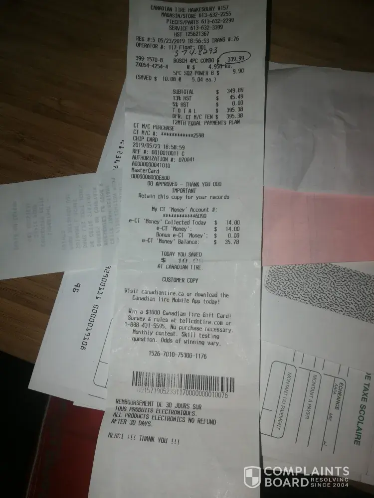 I would like to discuss this with someone. Not looking for money. The arrogance and the lack of apology has really upset me. And general unprofessionalism is not sitting well with me either. I certainly will never use Canadian Tire in simcoe again. I'm thinking this might be a story for my Facebook friends at this point.