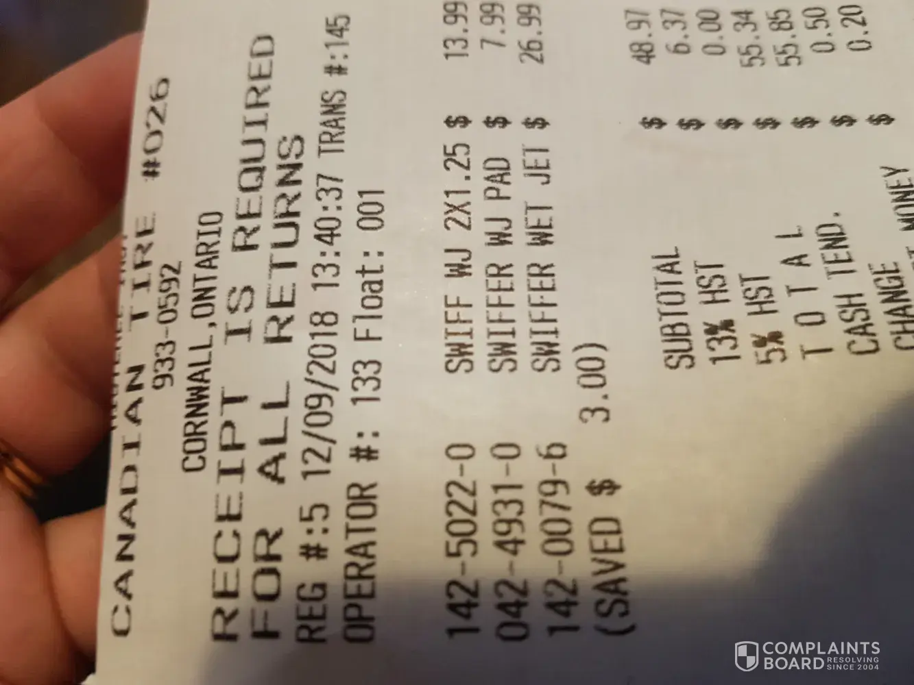 Canadian Tire earns a 1.3-star rating from 9 reviews and 1147 complaints, showing that the majority of customers are dissatisfied with purchases.