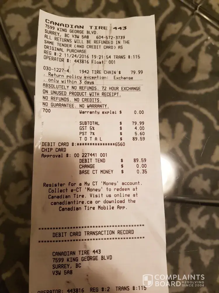 I believe I have often had issues when trying to return items at Canadian tire which is why I don't often shop there and if this isn't resolved I will continue to stay away as will my sister and family as well.