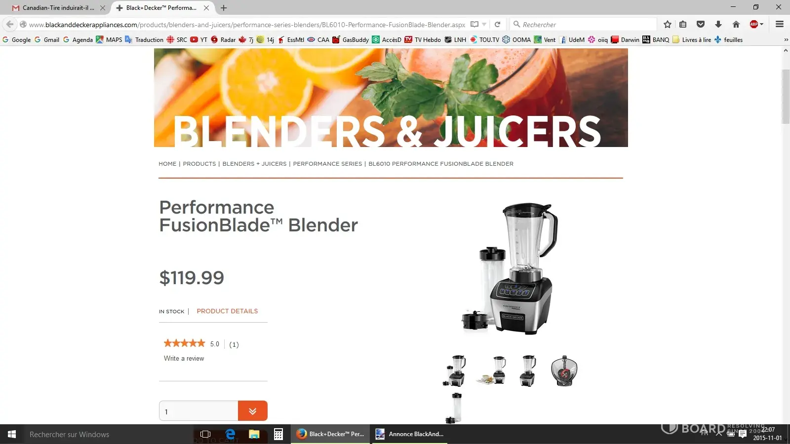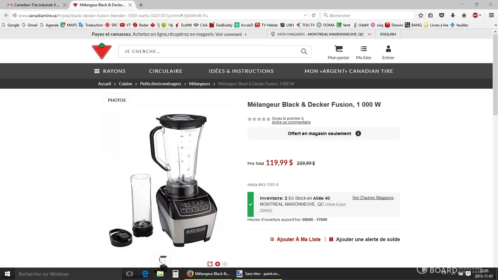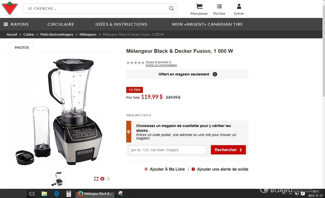 The Black and Decker Blender Fusion Pro is sold since November 2015 at 50% rebate (119, 99$) . Never be able to see it at the full price since (239, 99$) When I bought it end of october 2015, the pricing tag indicated that the rebate will end after 2 weeks, but this price is still active more than 2 months later On the Black and Decker Website, this product is sell to at 119, 99$ (no rebate). I sent comment on the CanadianTire website.. no answer, comment was never published. I suspect Canadian Tire to use a false advertising for this product.