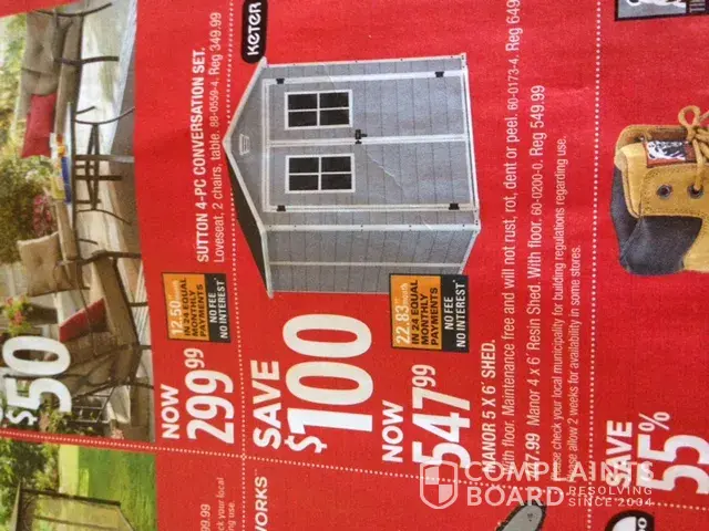 I found this garden shed [protected] on sale in the Canadian tire flyer on sale for $547.99 regular $649.99. I called and searched CDN tire's to make sure they had it in stock because in the flyer you can see it says "please allow 2 weeks for availibilty in some stores" I talk to someone in seasonal at CDN Tire located @ 5200 Richmond Road SW Calgary. I asked him to look for one for me and please put aside for me to pick up. He graciously takes a look to check stock & calls me back but says as per his manager he can't put my name on it but that they did have 2 in stock and it would be waiting for me in trailer #4 for when I was off work. I then ask a friend to put a roof rack on his SUV to help me pick up after work, we head to CDN tire and ask a person in seasonal dept. to see the size and weight of the box. they were able to write down the PC code so I could go inside to pay and also purchase tie downs to make sure to get this large box home safely. The price comes up as regular price, the cashier then gets the customer service manager named Yolanda and she informs me after looking at the flyer I provided for 3 seconds that the sale end the night prior and that she could not honour the sale price. I was floored, I had to search for this garden shed, which was not out on display, the flyer said please allow 2 weeks for availibilty but Yolanda tells me "No that was a 4 day sale and it ended June 12th and I was there evening of June 13th after searching for 2 days for a CDN tire to have this garden shed in stock or someone to actually help me when I called... and because the flyer stated "2 weeks for availiblity" I am honestly not sure if Yolanda could have done anything to honour the price or if she was just doing her job or if she simply did not care for a customer sale because it was not money in her pocket. As far as customer service is concerned it felt more like attitude and that she didn't want to deal with anything because it was almost time for her smoke break. I am absolutely angry, disappointed and want this situation to be rectified. I will put this complaint to anyone and any website who will listen. I felt this entire situation to be such a clap in the face no wonder our world is so cynical and negative. I feel cheated. I walk out without making any purchase. I then have to walk out to the two guys from garden/seasonal who had the garden shed ready to go outside of the trailer and told them the situation and they could not believe that there Customer service manager would not honour the sale, they felt bad for me and I felt bad for wasting their time as they were super helpful. I think we were all in shock that Yolanda wasn't able to help and unfortunately she was their manager and their authority.