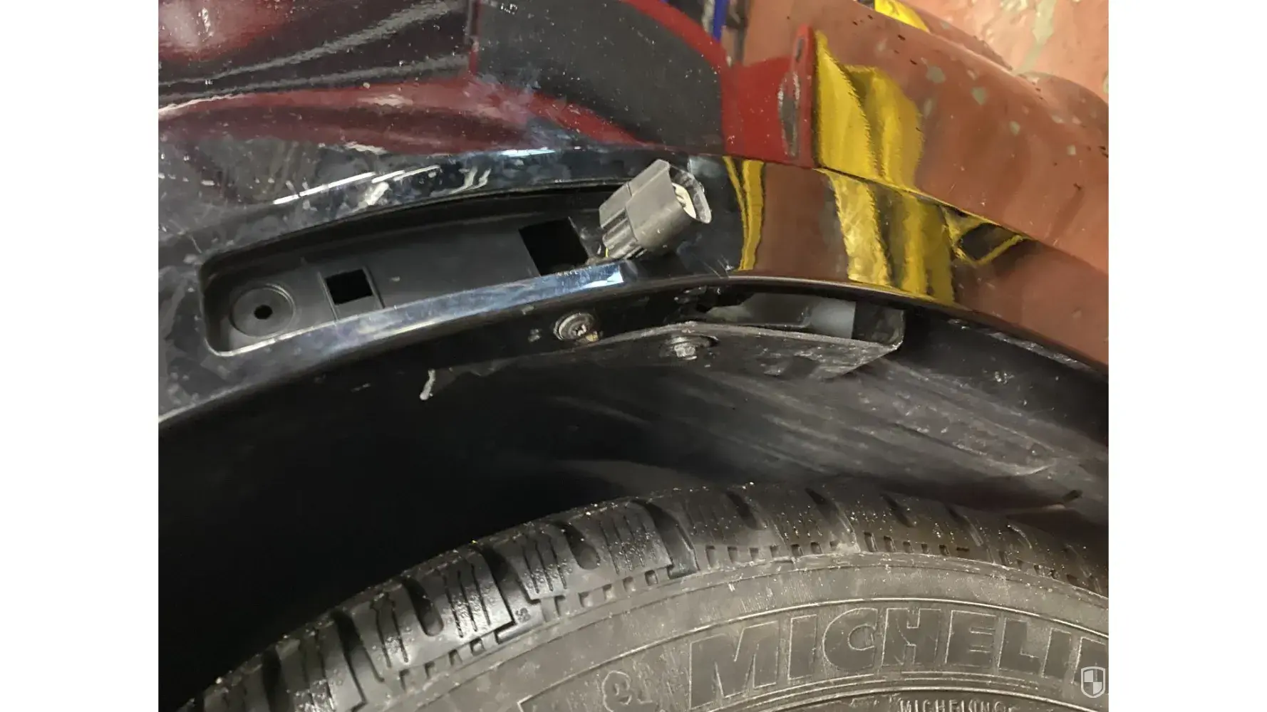 marker light hanging around, wiring exposed & bumper fittings not fitted properly.