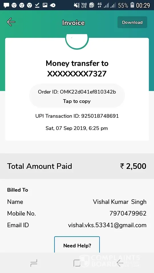 Desired outcome: Blocking of his Account and recovery of 97000 INR