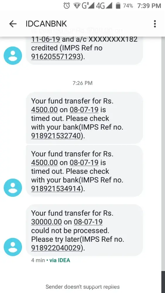 My all IMPS transactions failed. Money debited from my account but not transfer to another account. Please check carefully and transfer back to my bank account. More than 5 IMPS transactions failed. it's too bad