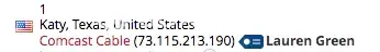 Look. Things called evidence. Lauren Green's IP. Lauren Green goes through COMCAST for her internet. In the cloud of information is labeled Lauren Green's IP.