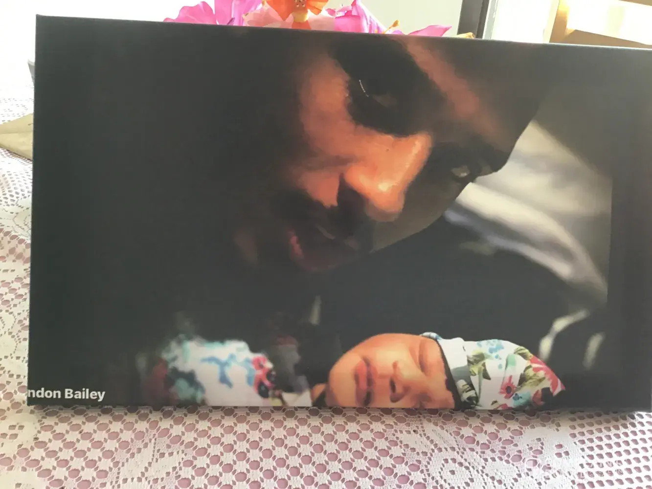 I ordered a picture on Canvas of my son and his new born daughter. It's horrible the baby is have on picture along with my son's name