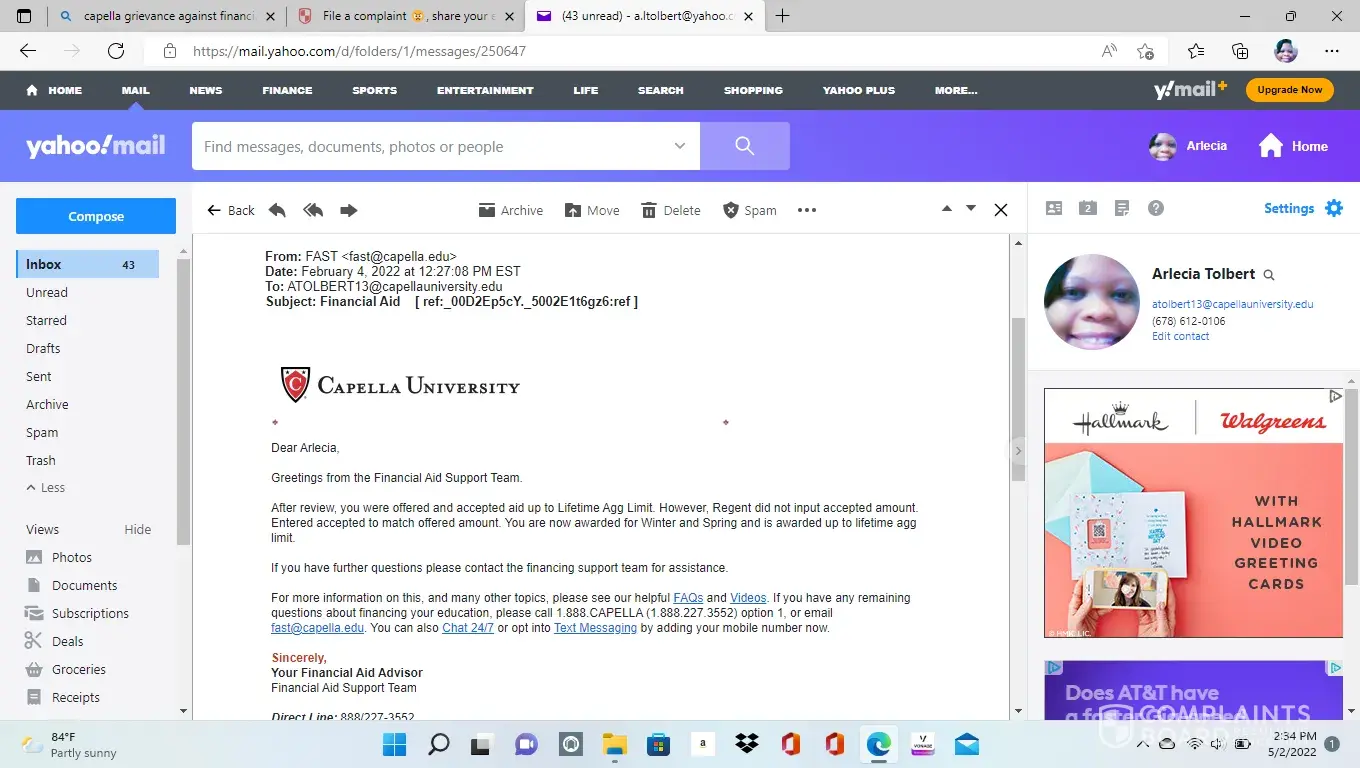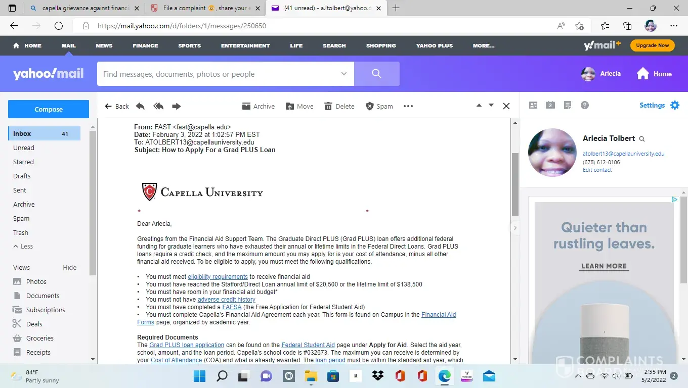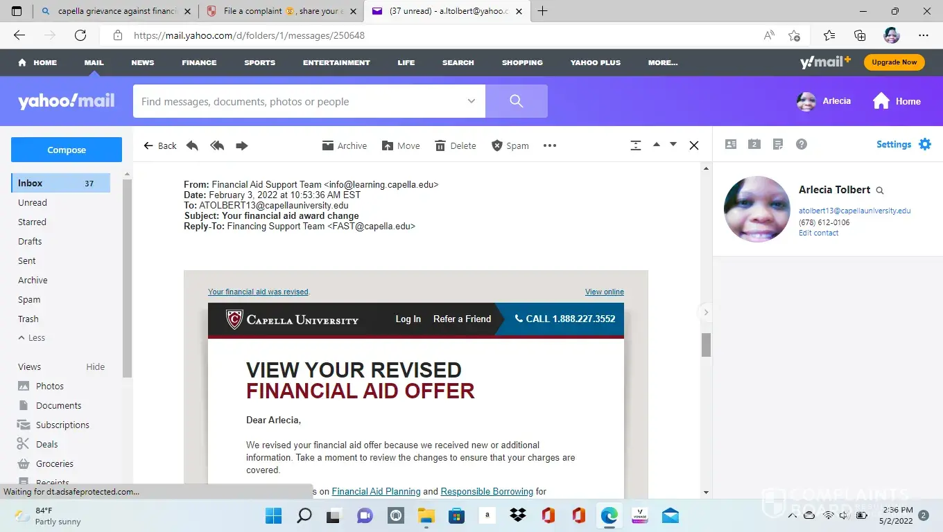 Capella University Financial aid and poor communication