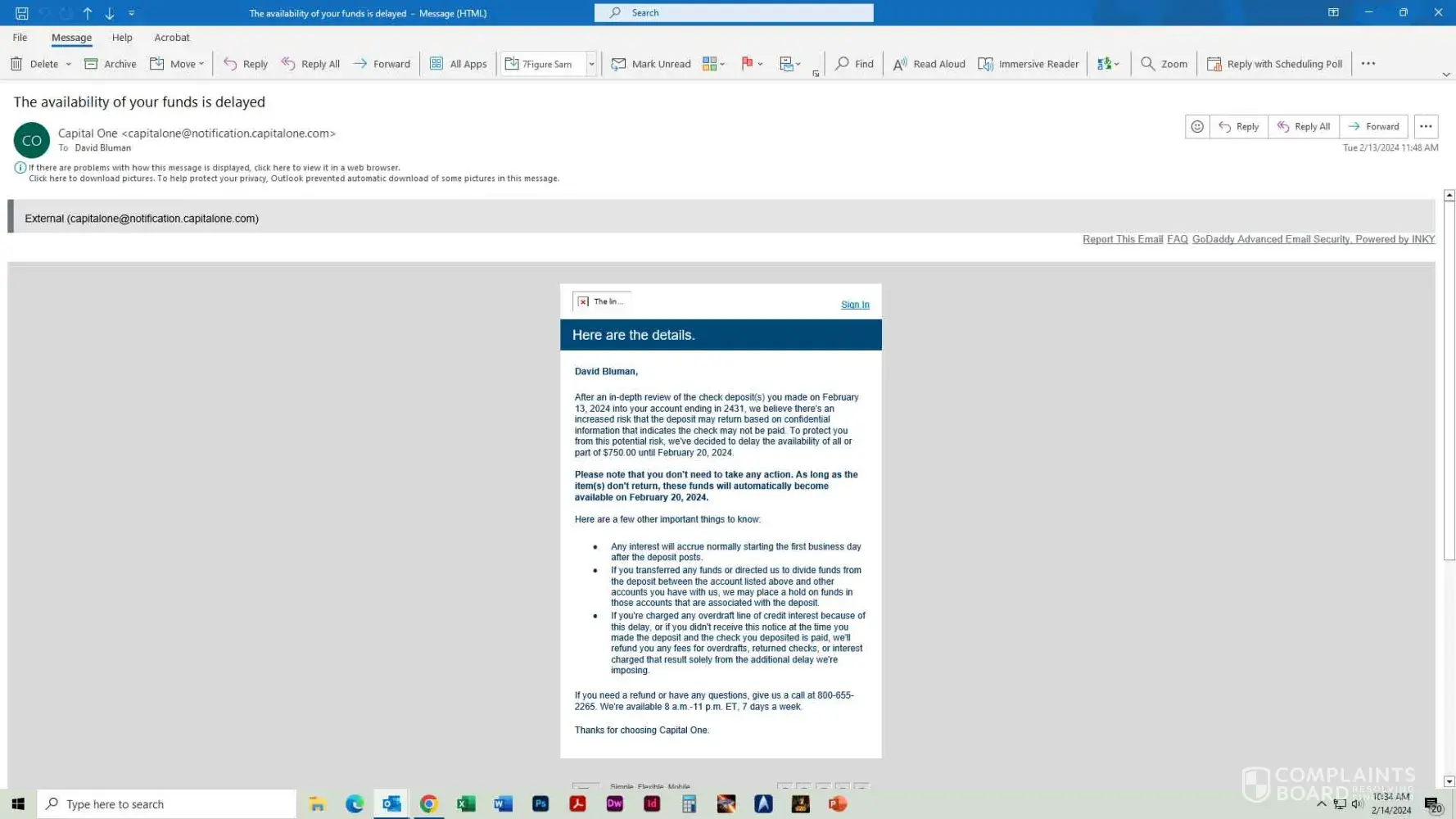 This unnecessary stress is bad for my health. And honestly, no one at Capital One Bank seems to care at all about my personal checking account.
