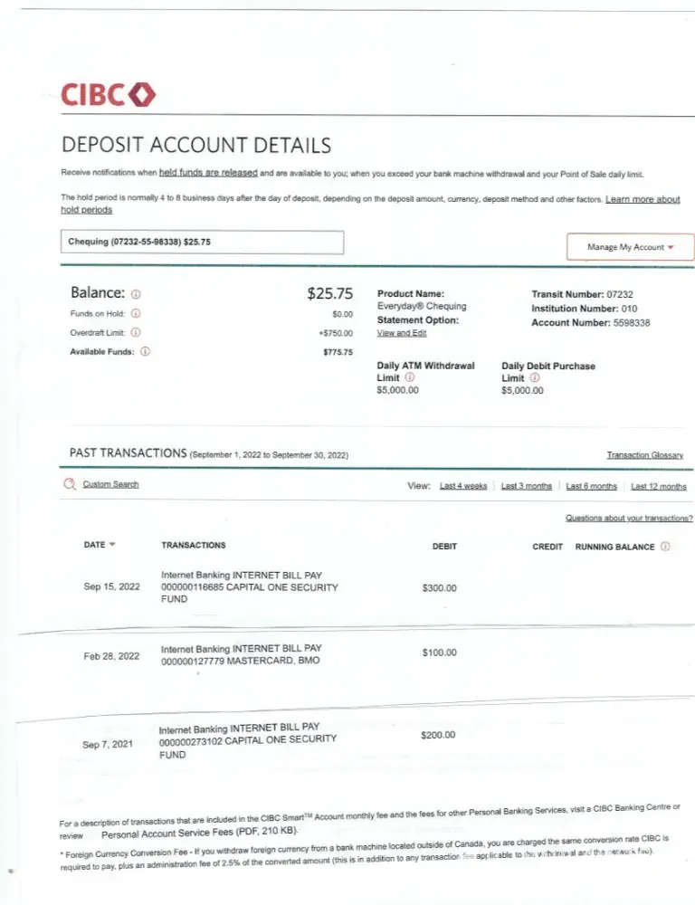 all payments are made through cibc bank account # [protected]