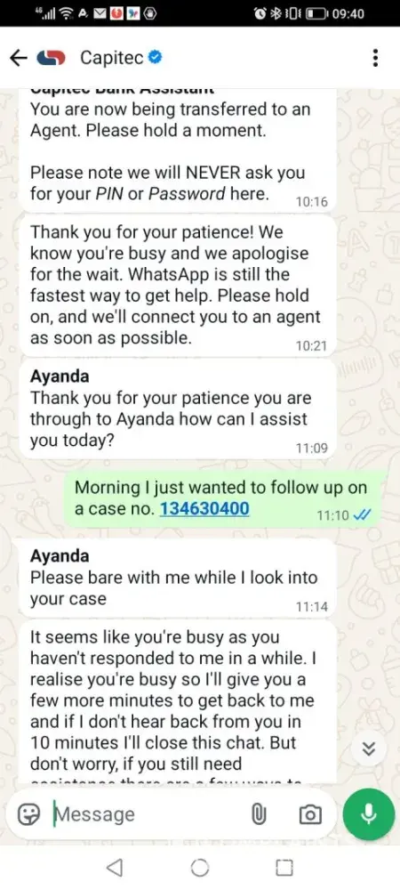 Hi I have submitted a funeral claim on your whatsup chanell on the 12/09/2023, up untill now I have not receive feedback from Caputec. I have been following up with Capitec help desk and no one is coming back to me, I think Capitec does not symphathise with their clients and I am not happy with the service I am receiving from Capitec. Will you please provide me with feedback on this case ref no [protected]. We are busy with funeral arrangements and its critical that we know if we are going to b assisted or not.