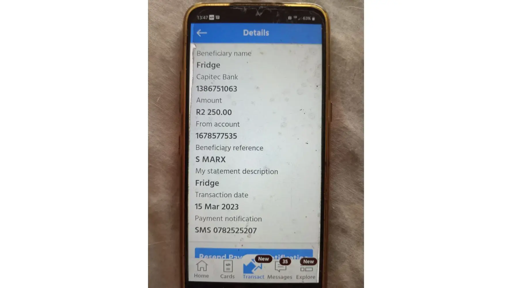 I received the money into my bank account the following day on 2022-11-24 and when I tried to pay the money over to my vehicle Finance company, Capitec froze my account.