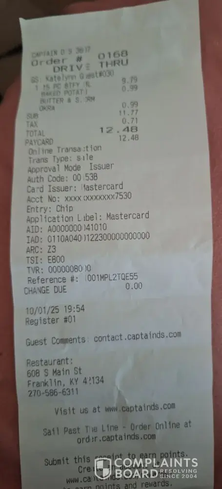 617 Captain D's Complaints