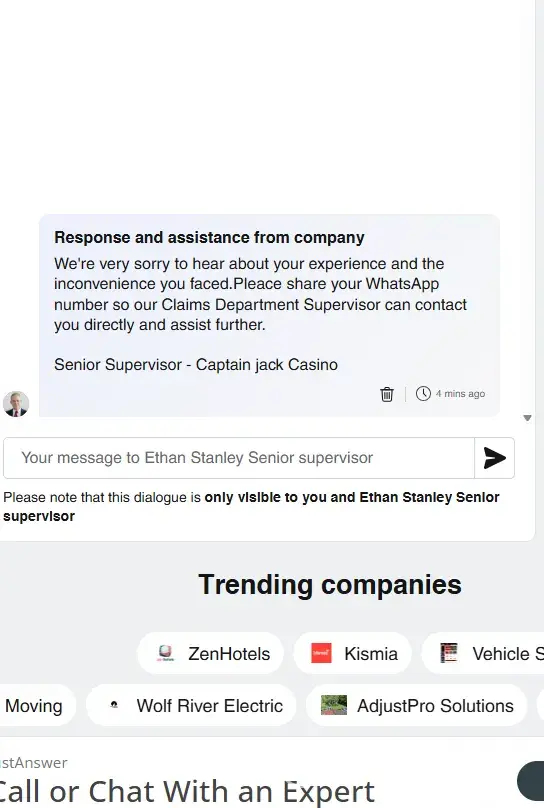 Confidential Information Hidden: This section contains confidential information visible to verified Captain Jack Casino representatives only. If you are affiliated with Captain Jack Casino, please claim your business to access these details.