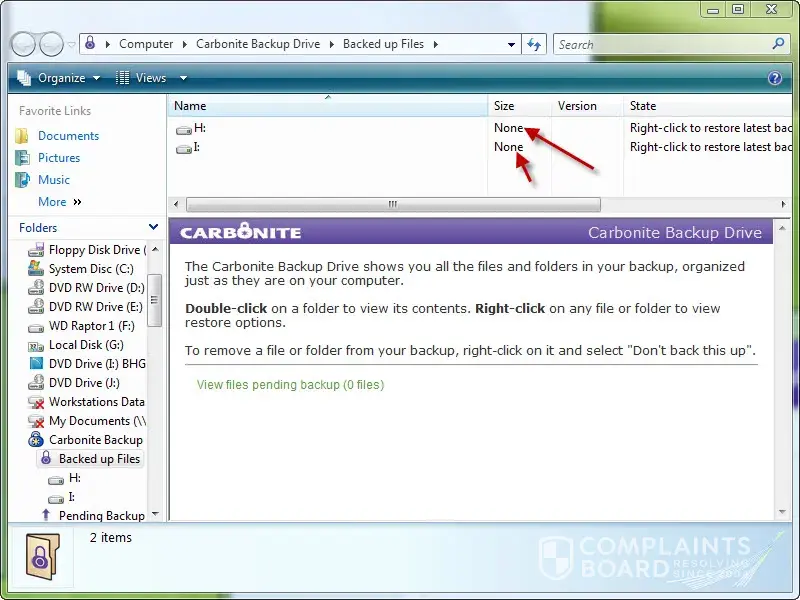 In the 2 years that I have had my Carbonite subscription I have only had to restore files once I think. There were countless files on my Carbonite backup drive. I went to restore a few files today and was shocked to see that nothing was available. Carbonite says that they have ZERO files available for me to restore.