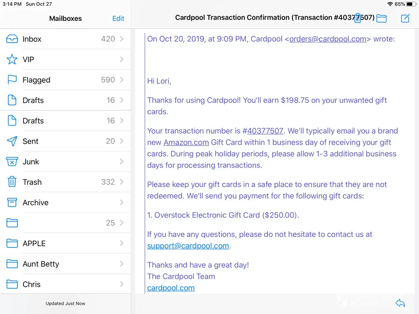 cardpool, inc. trade/sell an overstock.com gift for an Amazon gift card