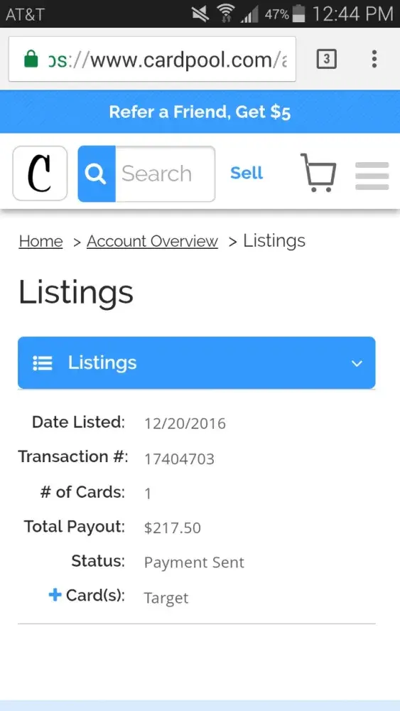 I had several gift cards which I decided to sell so I went online and found www.cardpool.com. This website seemed nice and I decided to try their service and sell some cards there. I made an account and successfully sold few cards, but I did not got the payment.