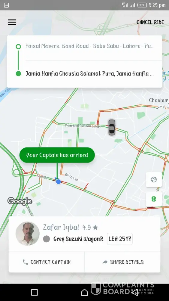 Careem Captain named as Zafar Iqbal having vehicle Grey Suzuki WagonR. Registration number LEA-2517.