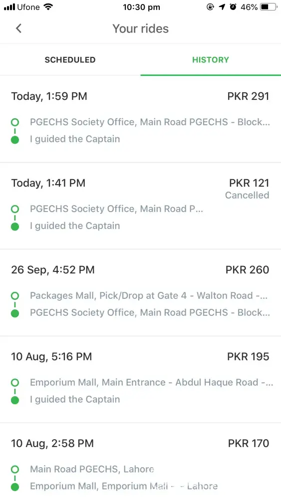 I am once again disappointed by careems service and captains dishonesty. My ride was confirmed by the person with id [protected], when I called him about explaining my location he directly told me that he has not enough cng to come to pick me and drop at my destination, when I asked him to to cancel the ride he told me there is no option to cancel the ride, means they are making us fools also. I had no option and canceled the ride and booked other person with id [protected], he messaged me to cancel the ride, once again I was helpless to do anything, this is about 1:20am of 25th oct, when I was returning with my family from hospital, even they have no values to not to do these sort of things when someone is from hospital, so shame