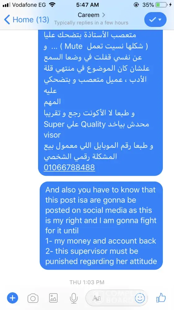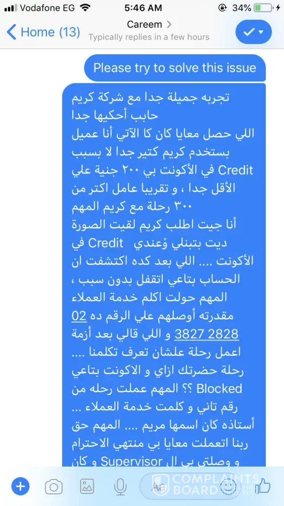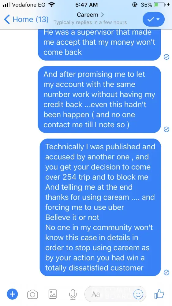 You can find this chat between me and the official page for Careem, note that they block my account as they said because I made a trip for the captains upon there request ( as this policy wasn't not mentioned in there polices ) and take from me about 200 L.E