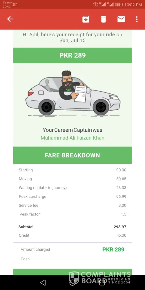 Later on Contacting the Careem help Desk which they issued me a new Ride which is again a very old Car i don't Expect Paying 307Rs and getting such a Car.