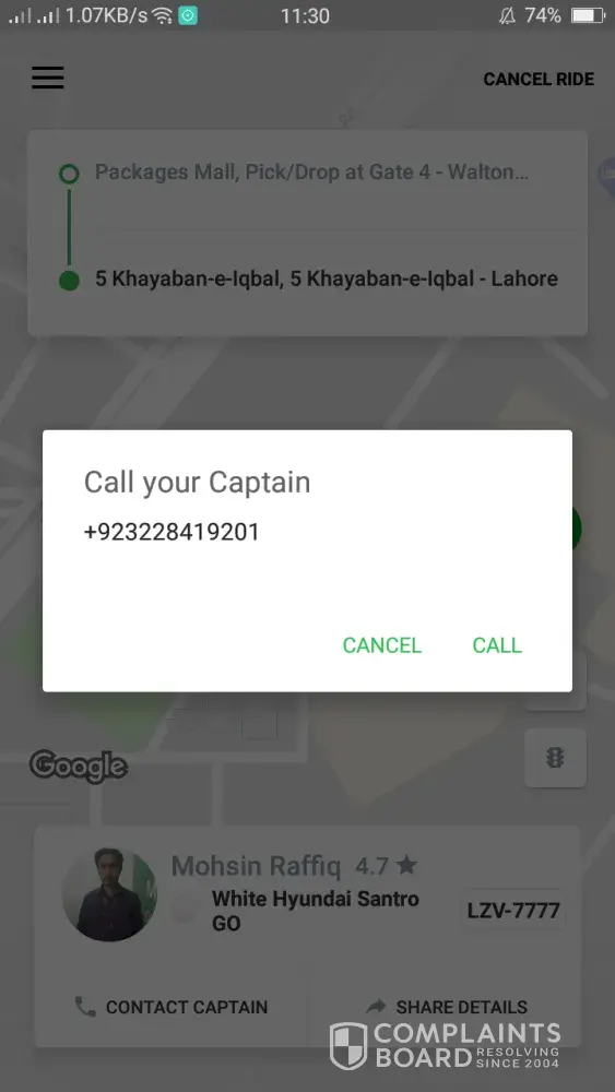 on his mobile. By this action he has broken my trust on him as well on CAREEM, mean Careem do not inquire about the character of her Captains. I don t need the compensation but the action against him. His phone number was [protected].