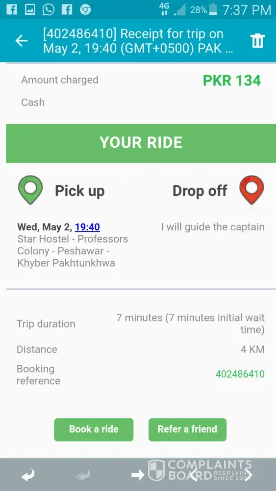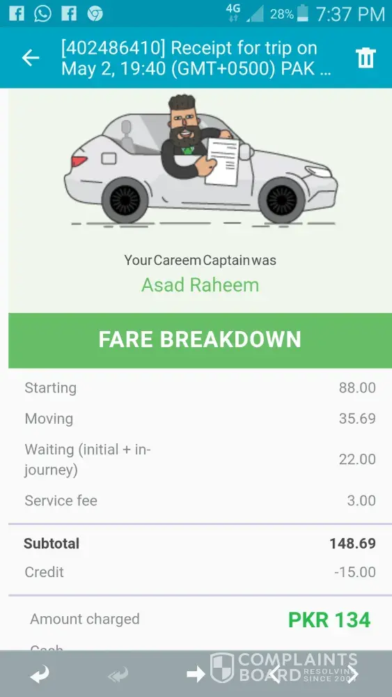 I called careem Pakistan as well a few minutes ago to consider my complaint.