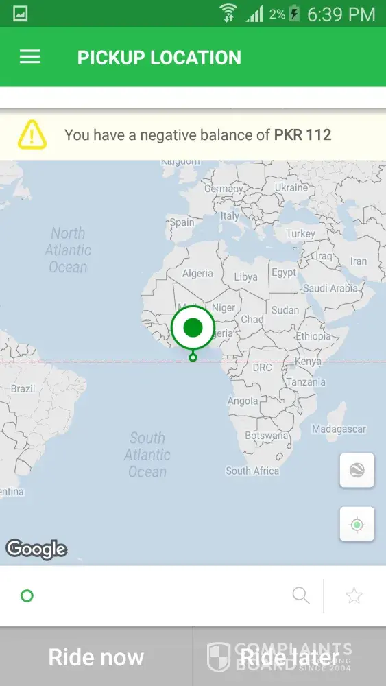 But he didn't want to come. So he blocked me and I got negative balance in my account, so please fix that (120) PKR