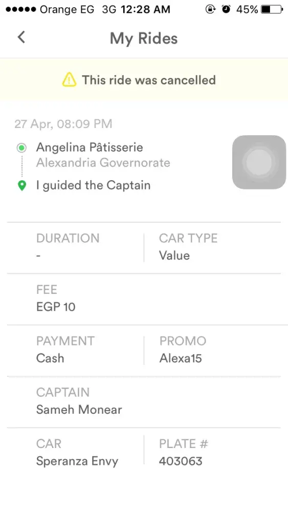 My name is Ingy Montasser from Alexandria Egypt, yesterday I had a ride with Careem, when the captain dropped me off, he claimed that the internet connection was down so he couldn't tell me how much is the fare, I left 20 EGP, however I inserted a 15 EGP promo code, then I found that I have a negative balance of 10 EGP, which is unjustified.