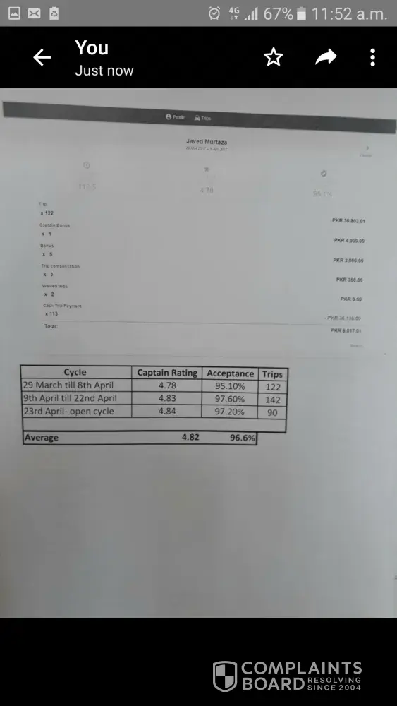 62 trip not bonous in car no534 cell no [protected] arshad mahmood not bank account transfer in money.please help careem