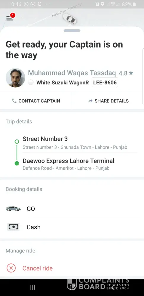I had book my ride at about 10:30 am today from Sector C Askari 11 Lahore Pakistan to Daewoo Terminal Thikar Niaz Bage.