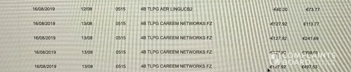 Careem networks FZ the total of 511 euros in four payments of €127.92 on my 4B MasterCard debit catch