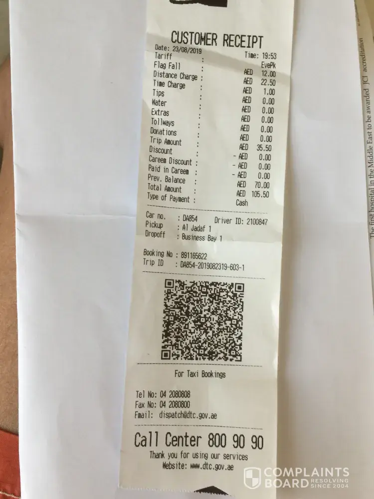 I called for a taxi on Friday 23 August to Business Bay 1. Taxi ride was good. My husband & l paid the taxi fare of 35.50Dhs & taxi driver outlined we had a unpaid previous unpaid balance of 70 Dhs. We paid the full 105.50 Dhs. I, Mrs Bally Shah, gets Taxi's to the hospital & l have always paid the fare & tipped the driver. Pls can you tell me where the unpaid bill arose. Booking No [protected]. Trip ID DA854 [protected]- 603-1.