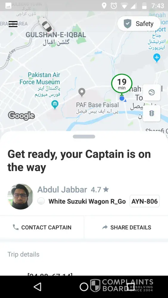 Iwant to complain about very bad experience about ride was unsafe and I was worried about the captain who doesn't know the ways and the length of the ride and the distance.