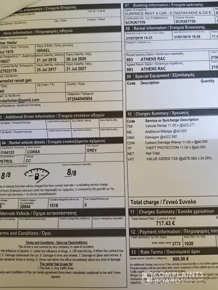 I was charged 400 Euro by the rental company on the 31st of July 2019