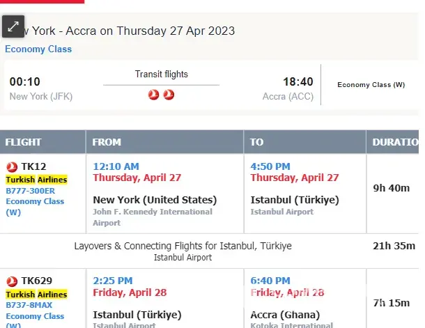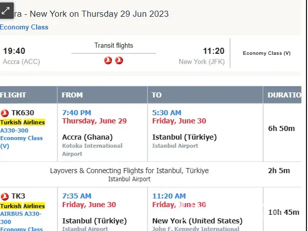 I bought my ticket on your early flight (7:05 a.m.) from Jamaica to NY (JFK) on the date mentioned above, intending to connect with Turkish Airlines en route to Accra, Ghana.