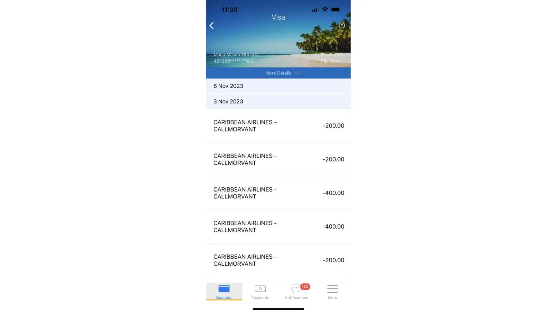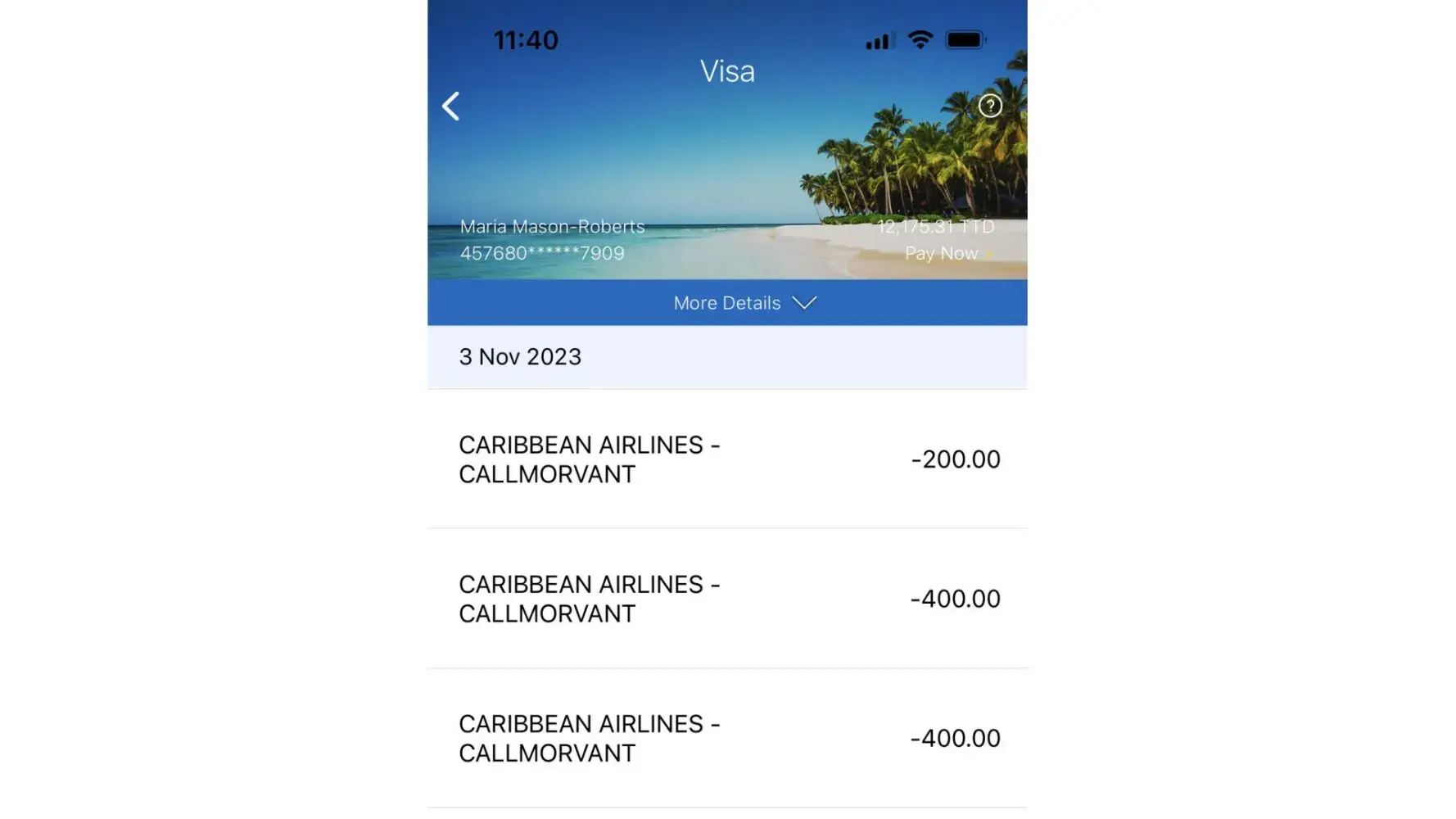 On checking my credit card status this morning, I noted that the four transactions have been duplicated (see photos below), so that an additional TTD 1200 was charged to my Credit Card, sending the card over limit with a resulting charge of TTD 50.