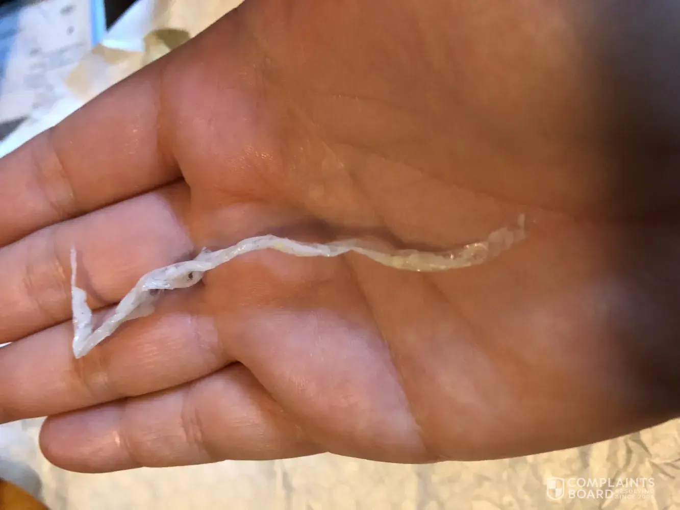 I visited the Carl's Jr. restaurant located at 1943 E. 17th St, Santa Ana, CA on May 27, 2018 at 08:19am. I ordered the Big Country Breakfast Burrito. When I was about half way through my burrito I bit into something weird. When I pulled it out of my mouth I found a piece of plastic packaging that was 4" long. I've attached 2 photos for you to see just how long this piece of plastic is.