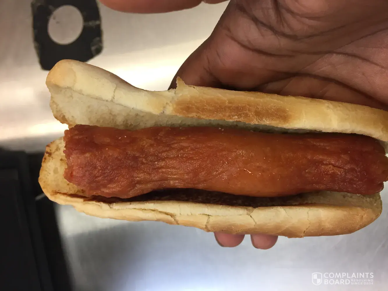 The sandwich was inedible. I have never returned food before in my life, but this sandwich was so bad, I couldn't eat it. It must have been sitting for a long time because it was soggy and rubbery. I couldn't even bit into the crust because it wasn't chewable. I returned it for a hamburger which was okay but not great. The french toast sticks tasted of grease from the deep fryer. The floor in the play area appeared to have been cleaned in the area around the tables. Who ever "cleaned" it did not move the chairs and tables. My grandson was crawling on the floor in the play area which alarmed me because it appeared to have never been cleaned.