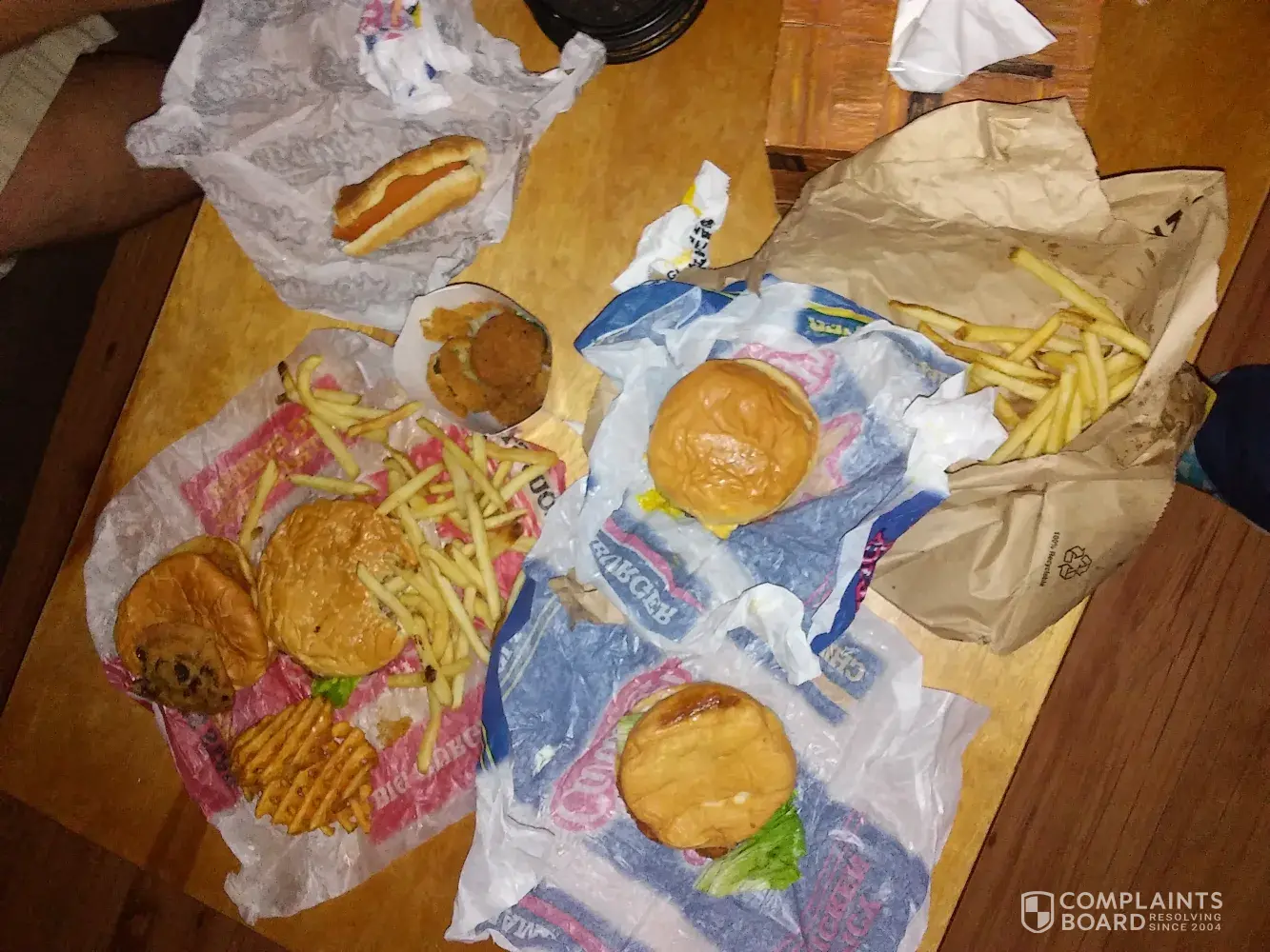 No napkins and no cookies, the food was cold and nasty looking, I told the lady about the mix up and also showed her the coldness of the food, all she did was throw some cookies on the bottom of the bag, along with the burger and hot dog which made the cookies smashed and off I went. Never made the order over so I was stuck with even colder food.the total of the order was 17.69, but really should have been 13 and change, I was never given the difference or refunded the money..This was the worst experience I've ever had at a fast food restaurant, and will never go back to that location. ..I have pictures and recipient number that are enclosed. I don't believe anyone should be fired, just retrained. Never once did I see a manager. Or was given a explanation of the poorness of the food. ..