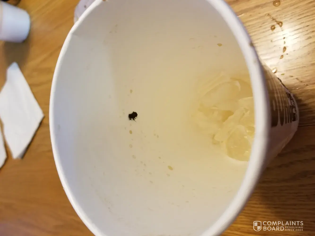 I finished my soda and opened the cup to dump out my ice when I saw a black something stuck to the inside of my cup. It was a flattened bug. It had to have been there before the soda was put in.