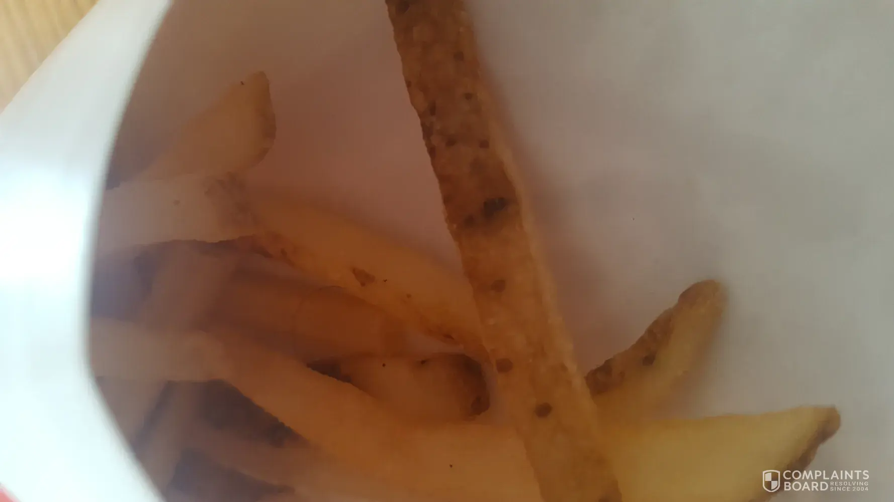 Spent over $ 50 at your establishment and found a black hair wrapped around a fry . The worst thing about it is, it was in the middle of the fries, so I had already eaten a lot before finding the hair. Is it not standard practice for hair to be tucked away or use a hair net? People work hard for their money, and I needed up having to throw away the food because I was so disgusted.