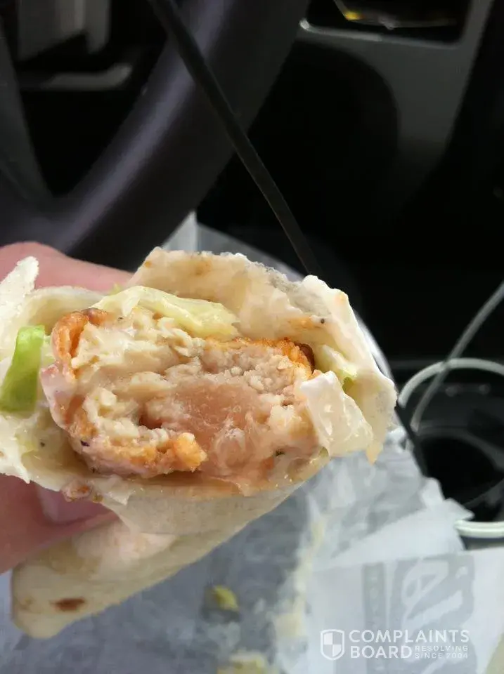 I ordered a Chicken Wrap (basically a chicken finger wrapped in a tortilla). It was raw. I didnt make a scene but neither the store manager nor the Corporate office offered an apology. I took pictures. It was a thing of beauty.